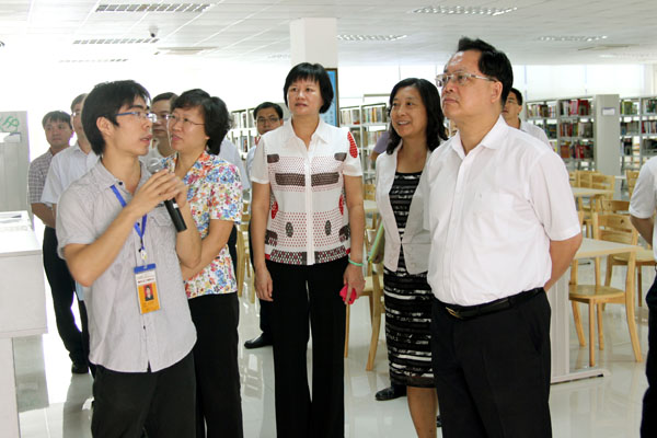 骆文智一行深入东莞镇村,参观考察了寮步镇横坑社区综合服务中心和社会工作服务中心,对东莞开展“人口文化十万丛书惠百姓”、人口文化丛书进入镇村图书馆、图书室和人口文化书屋等活动给予充分肯定。