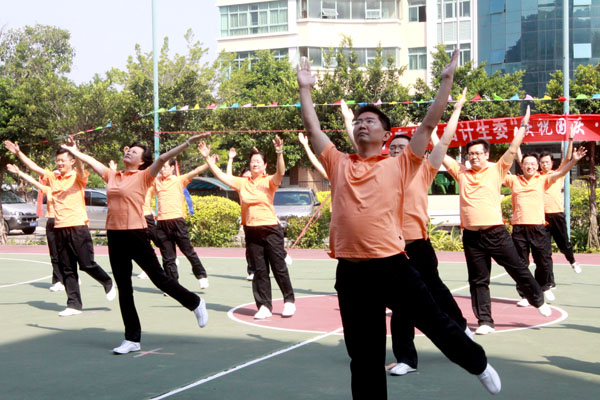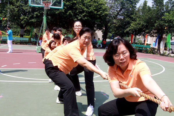 橙、红、紫、绿、蓝,7个代表队身着各色的运动服装踏步进场,分别是机关代表队、计生协代表队、人口发展研究院代表队、药具中心代表队、宣教中心代表队、科研所代表队和人之初代表队。活动内容主要是第九套广播体操和拔河。运动场上,有着健儿们奋勇拚搏的身影,凝聚着责任的力量。观众席上,响着拉拉队员摇旗助威的呐喊,弥漫友谊的芬芳。无论成功与失败,都演绎勇敢的品质,在竞争中透出健儿们执着、自信的精神。